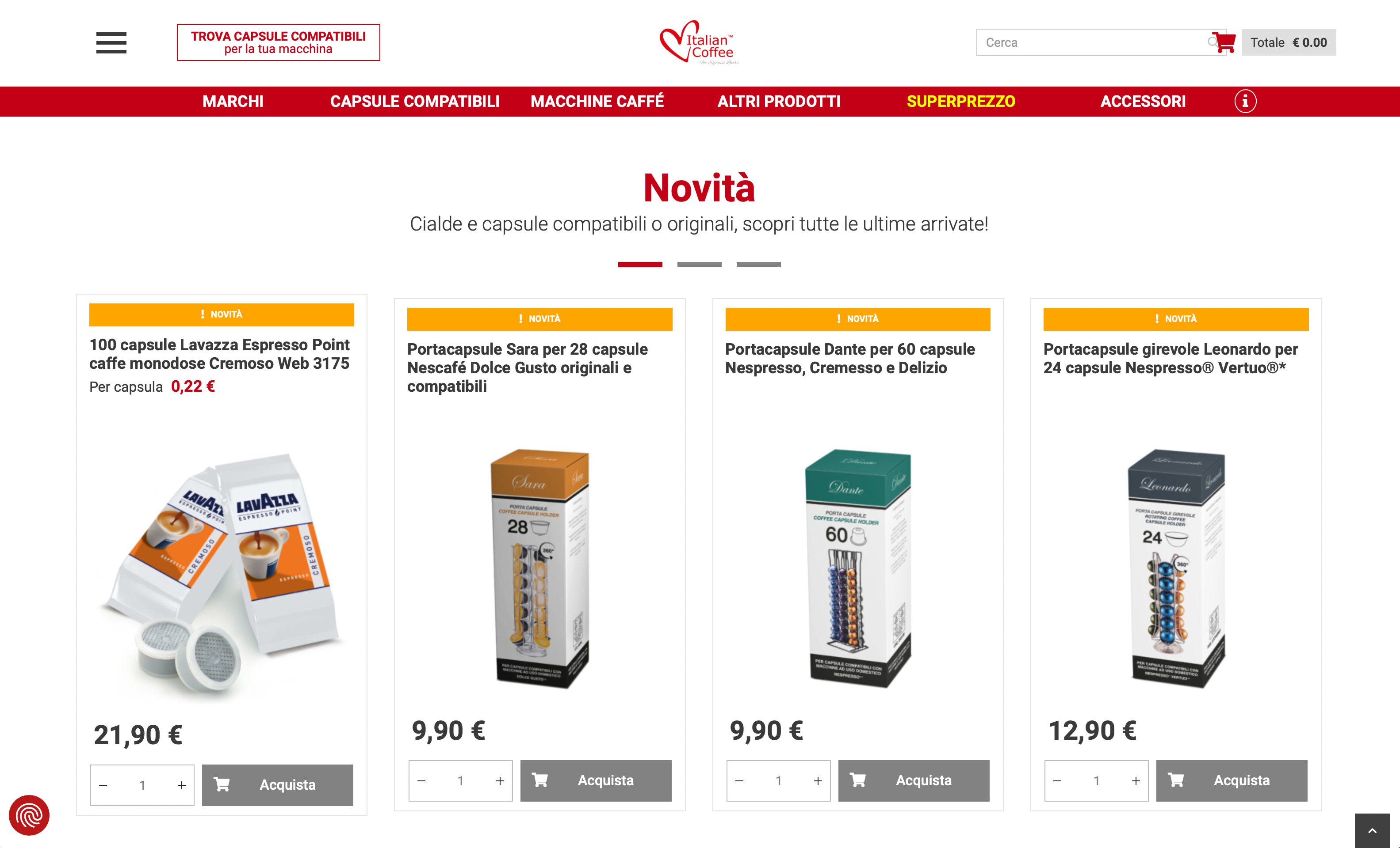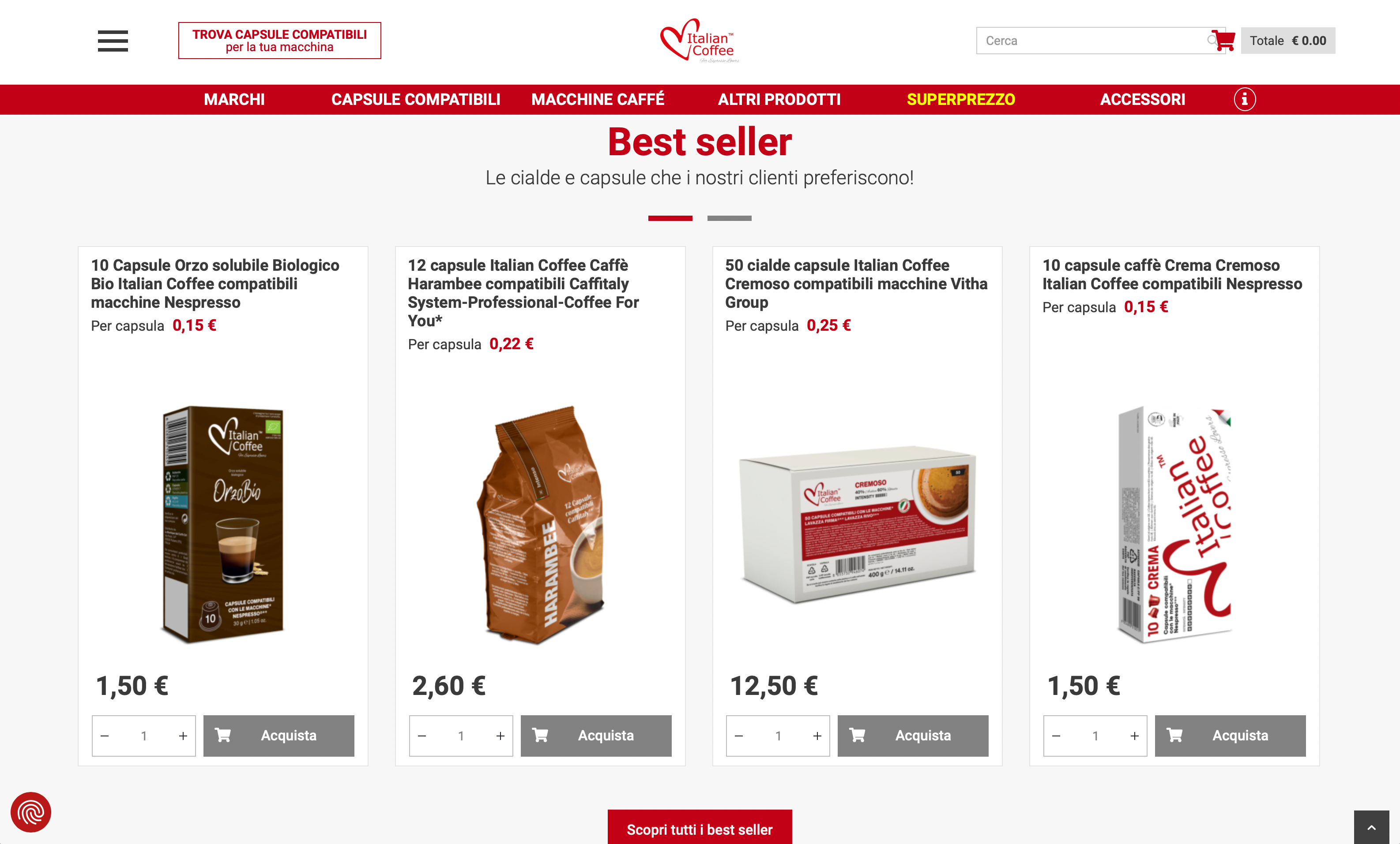 Italian Coffee è un'azienda leader in Italia nella fornitura e vendita di capsule di caffè compatibili con i sistemi più diffusi in commercio. Durante il corso degli anni abbiamo collaborato con Italian Coffee occupandoci sia dello sviluppo dell’e-commerce, sia fornendo consulenza strategica e supporto nelle attività di digital marketing.